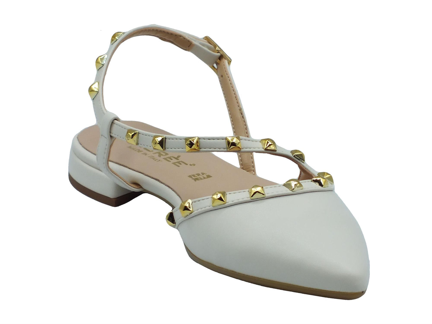 521t164 cap burro decolte a punta per donna in ecopelle bianca con tacco basso