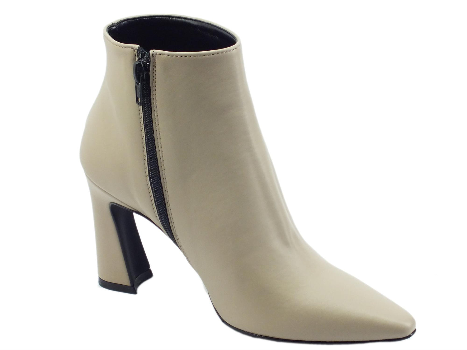 5637008 nappa tortora tronchetti eleganti a punti con tacco alto in ecopelle