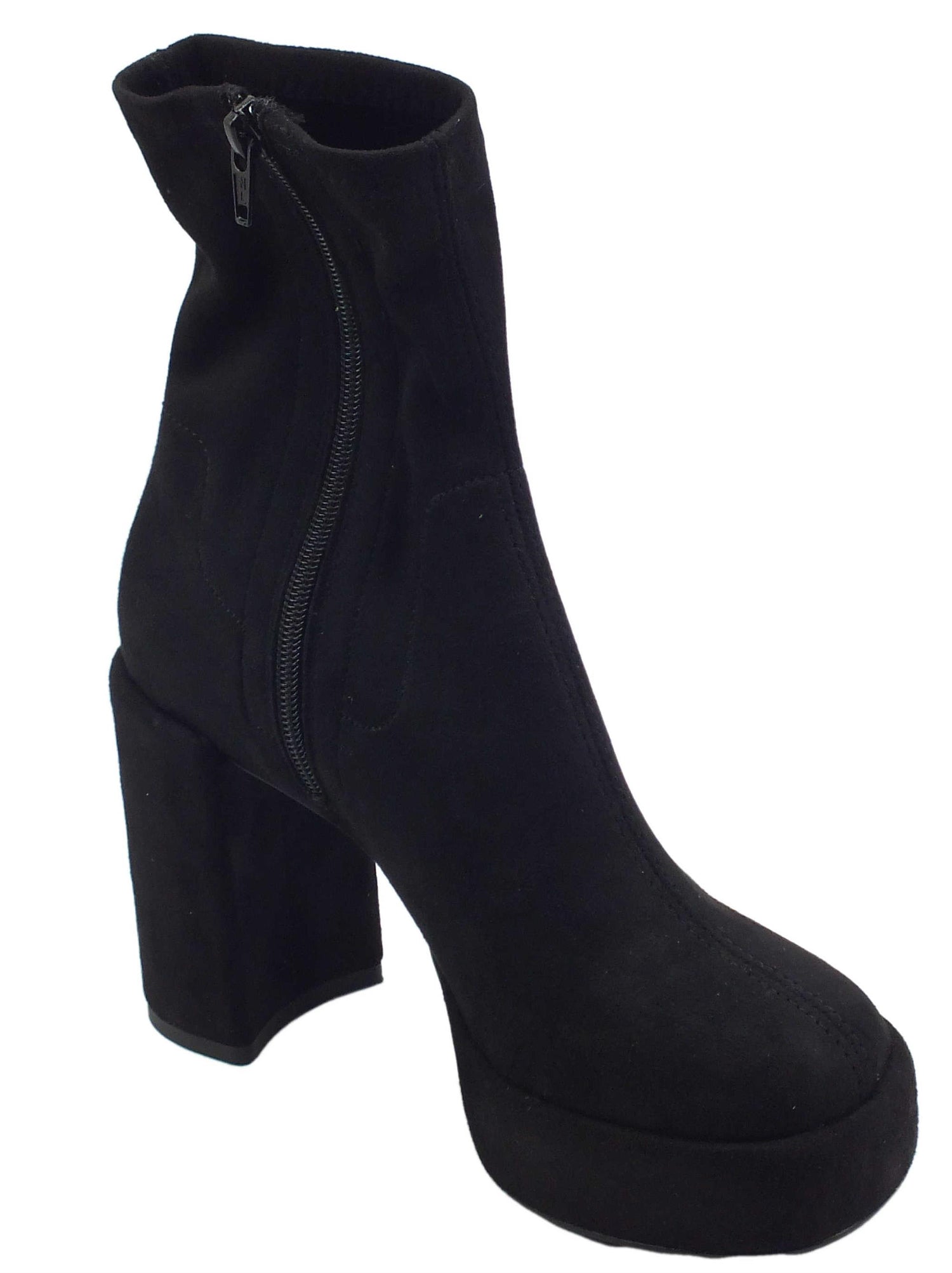 7227001 cam nero tronchetti accollati in tessuto elasticizzato con tacco alto