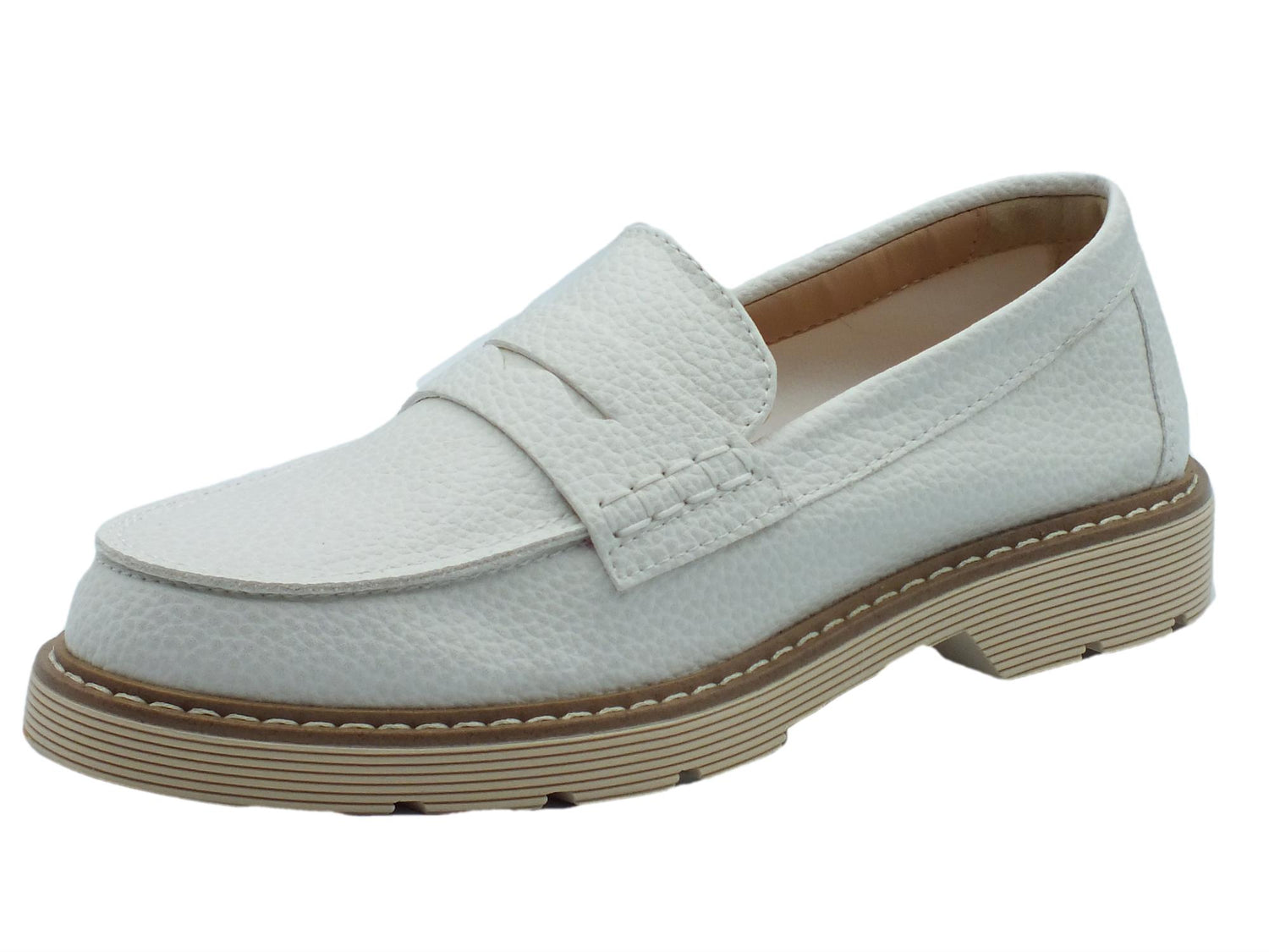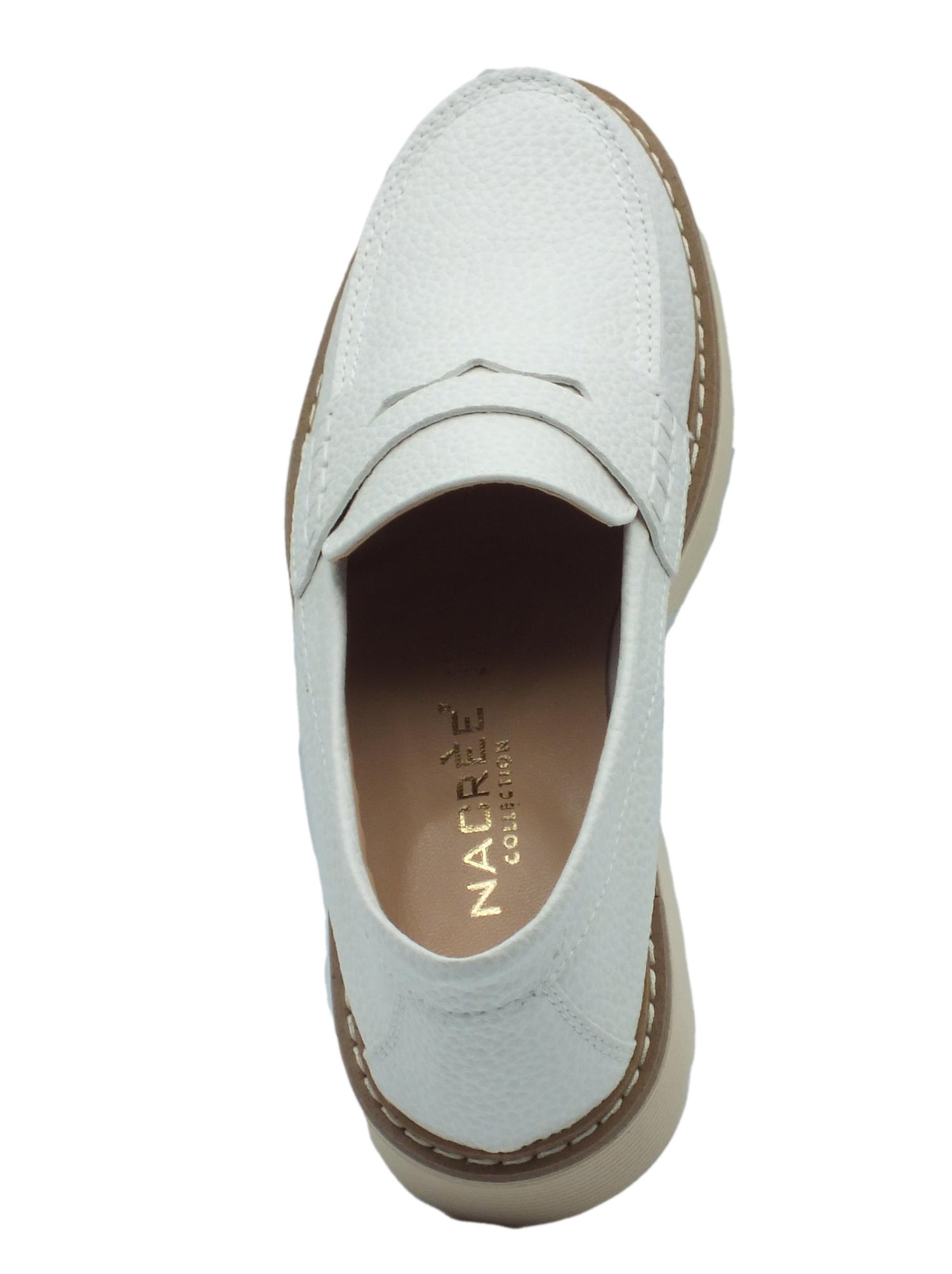 Astry020 vanity bianco mocassini per donna in ecopelle effetto martellata