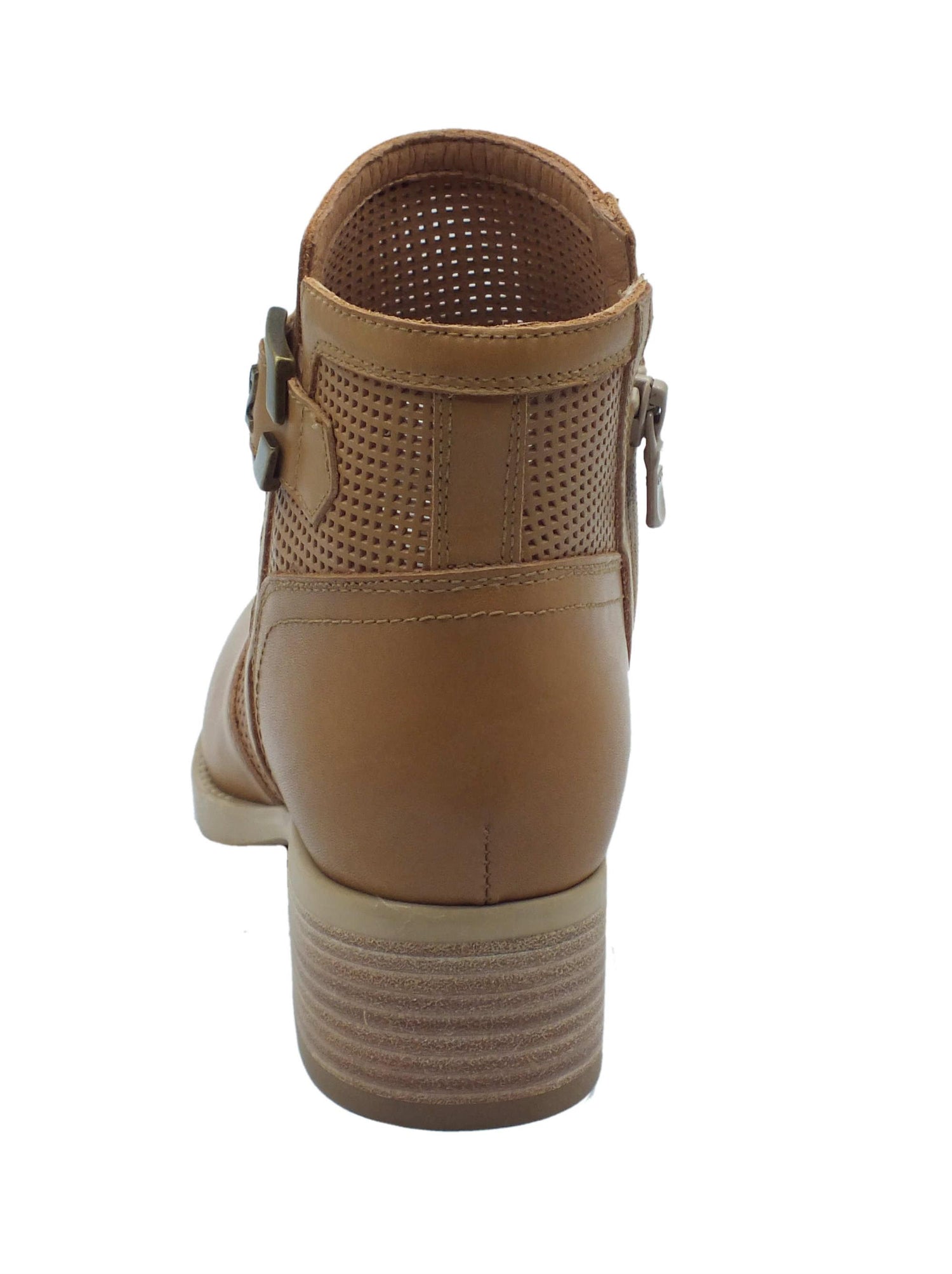 Nerogiardini e409710d cuoio tronchetti con tacco basso donna pelle traforata lampo