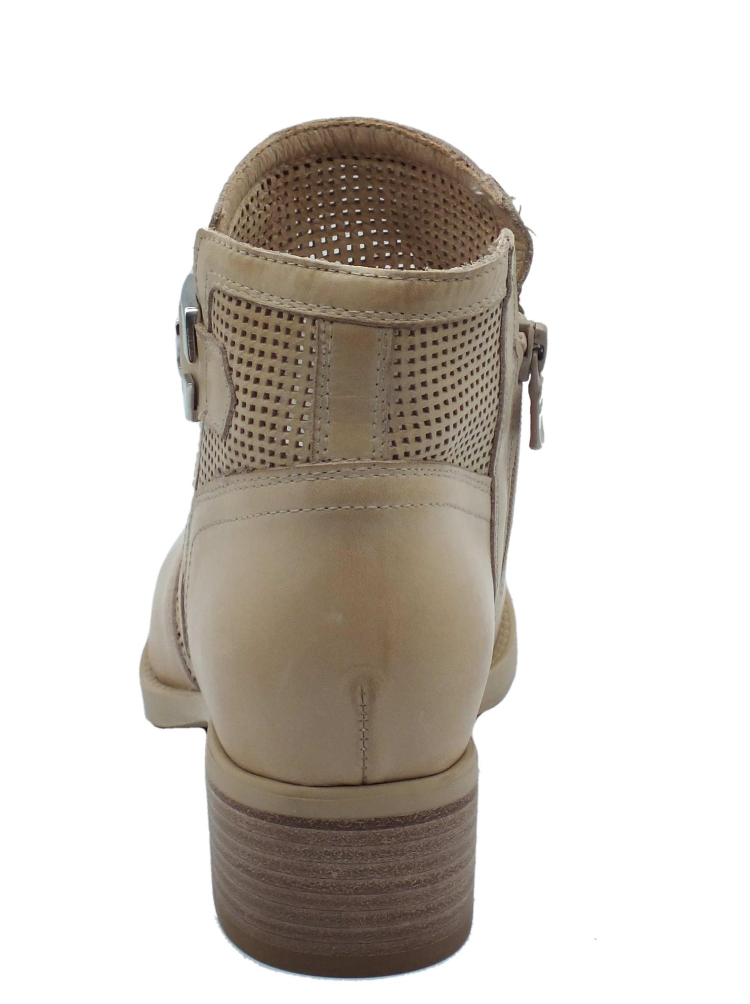Nerogiardini e409710d rio champagne tronchetti con tacco basso donna pelle traforata lampo