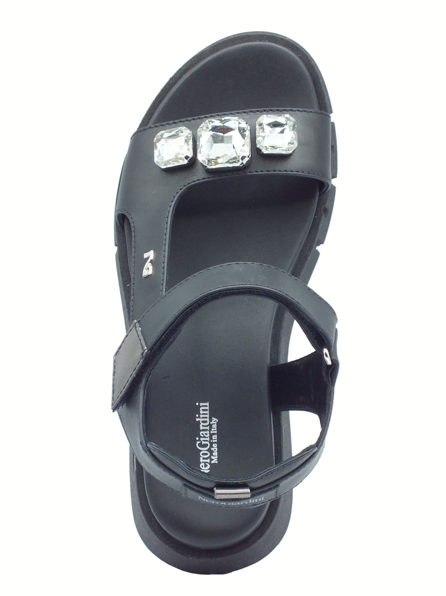 Nerogiardini e410707d tamigi nero sandali per donna in pelle con strappo e zeppa media