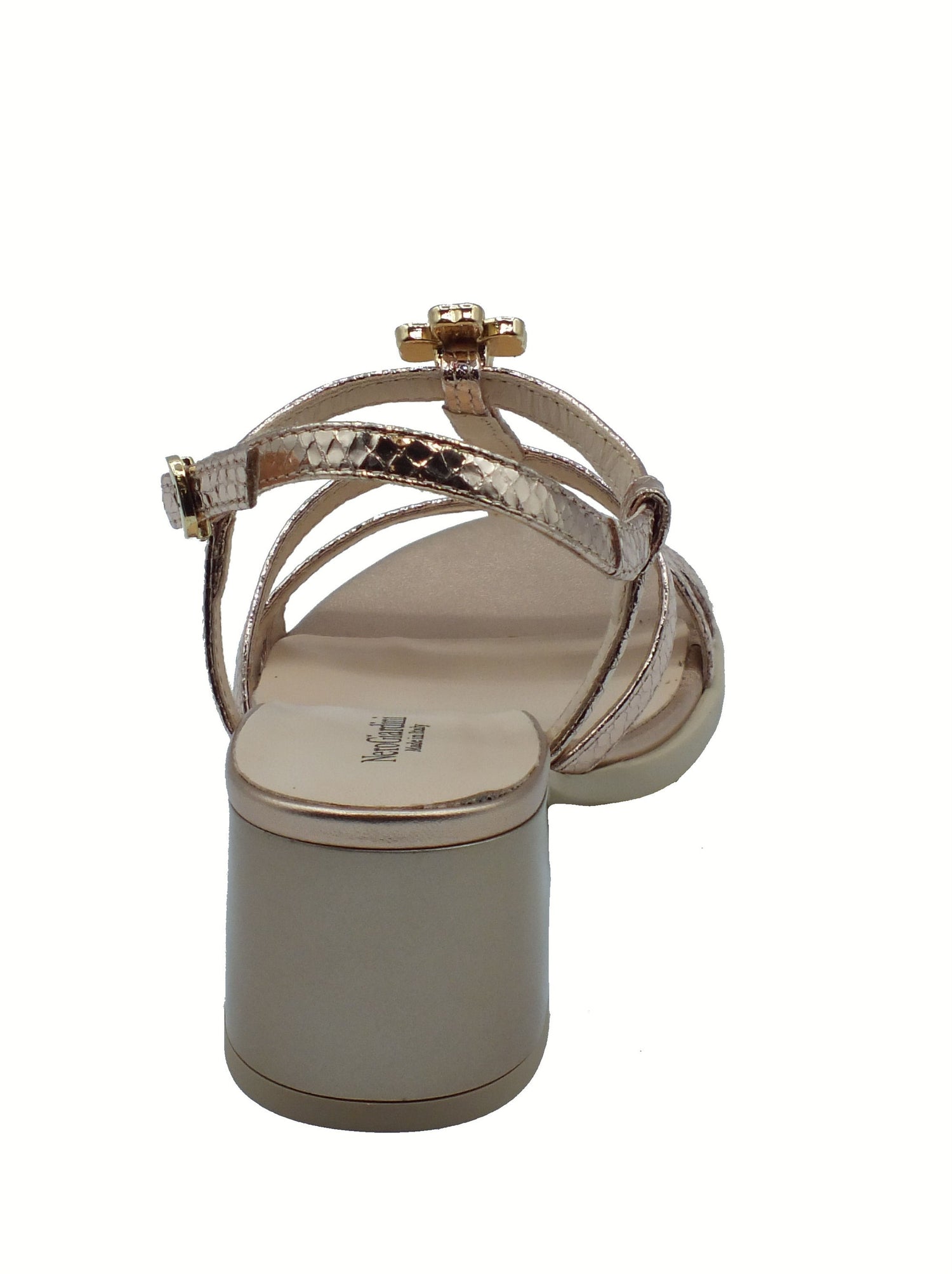 Nerogiardini e513260d blade phard sandali per donna in pelle laminata e brillanti rosa con cinturino