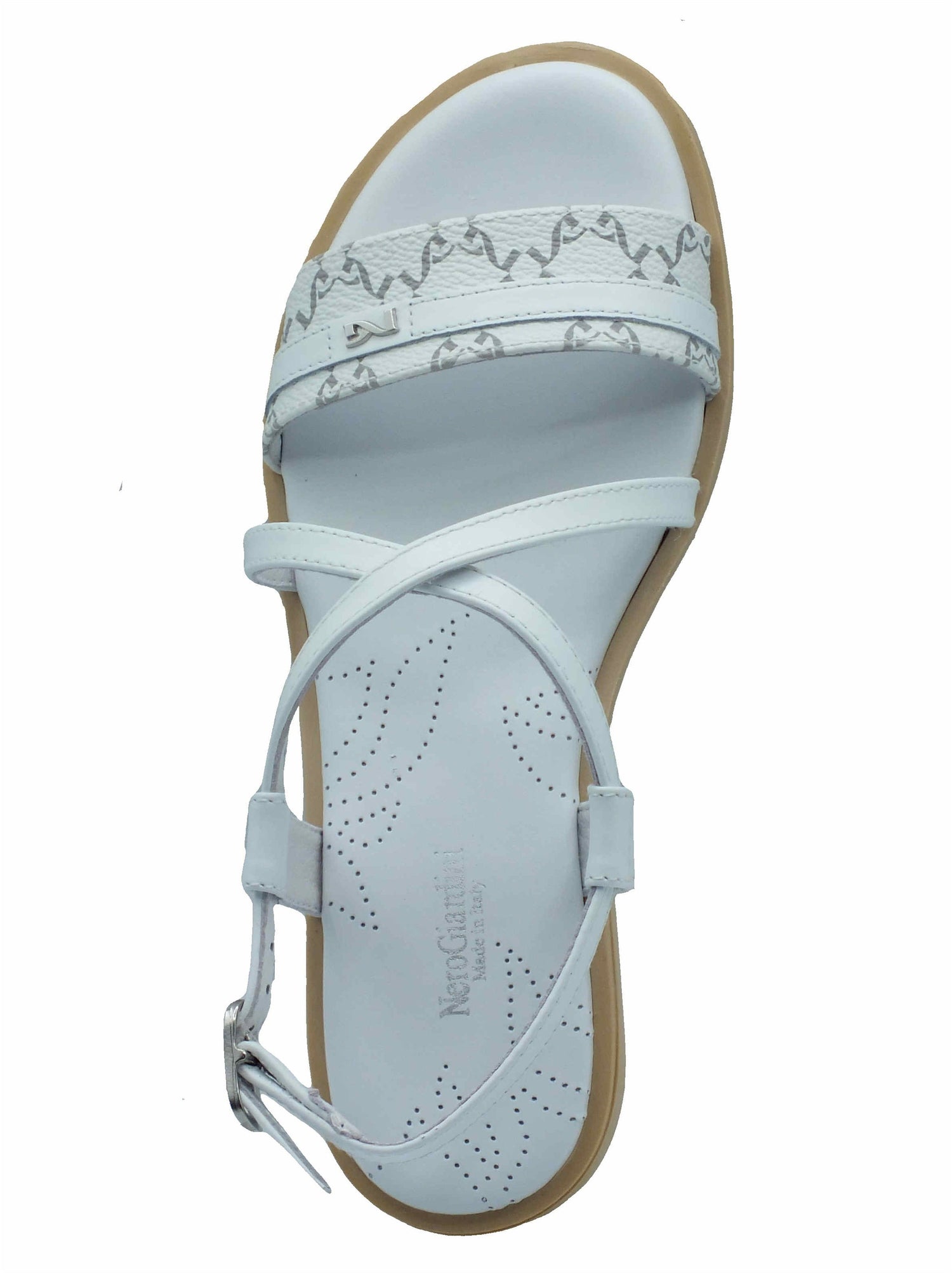 Nerogiardini e513403d giove barolo bianco sandali per donna in pelle con cinturino e tacco basso