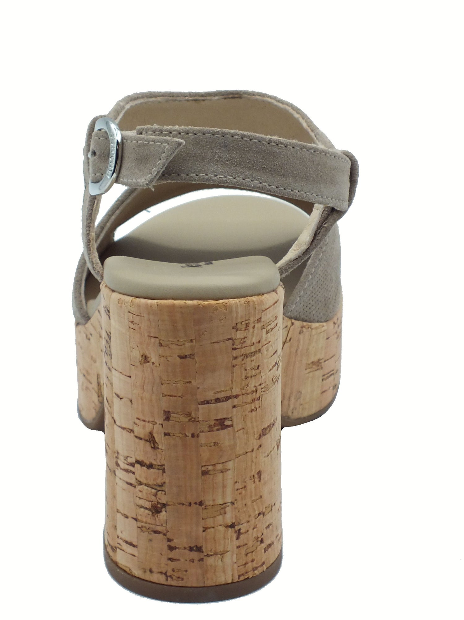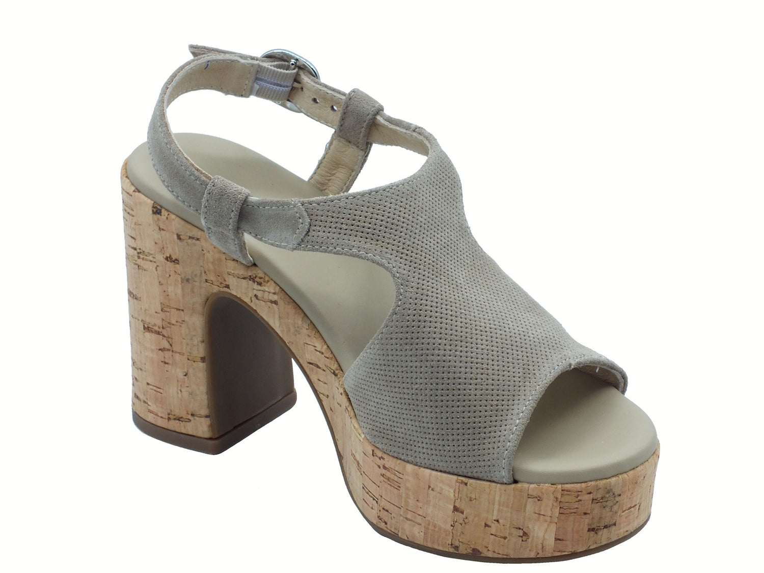 Nerogiardini e513621d velour creta sandali per donna in scamosciato beige con fibietta e tacco alto
