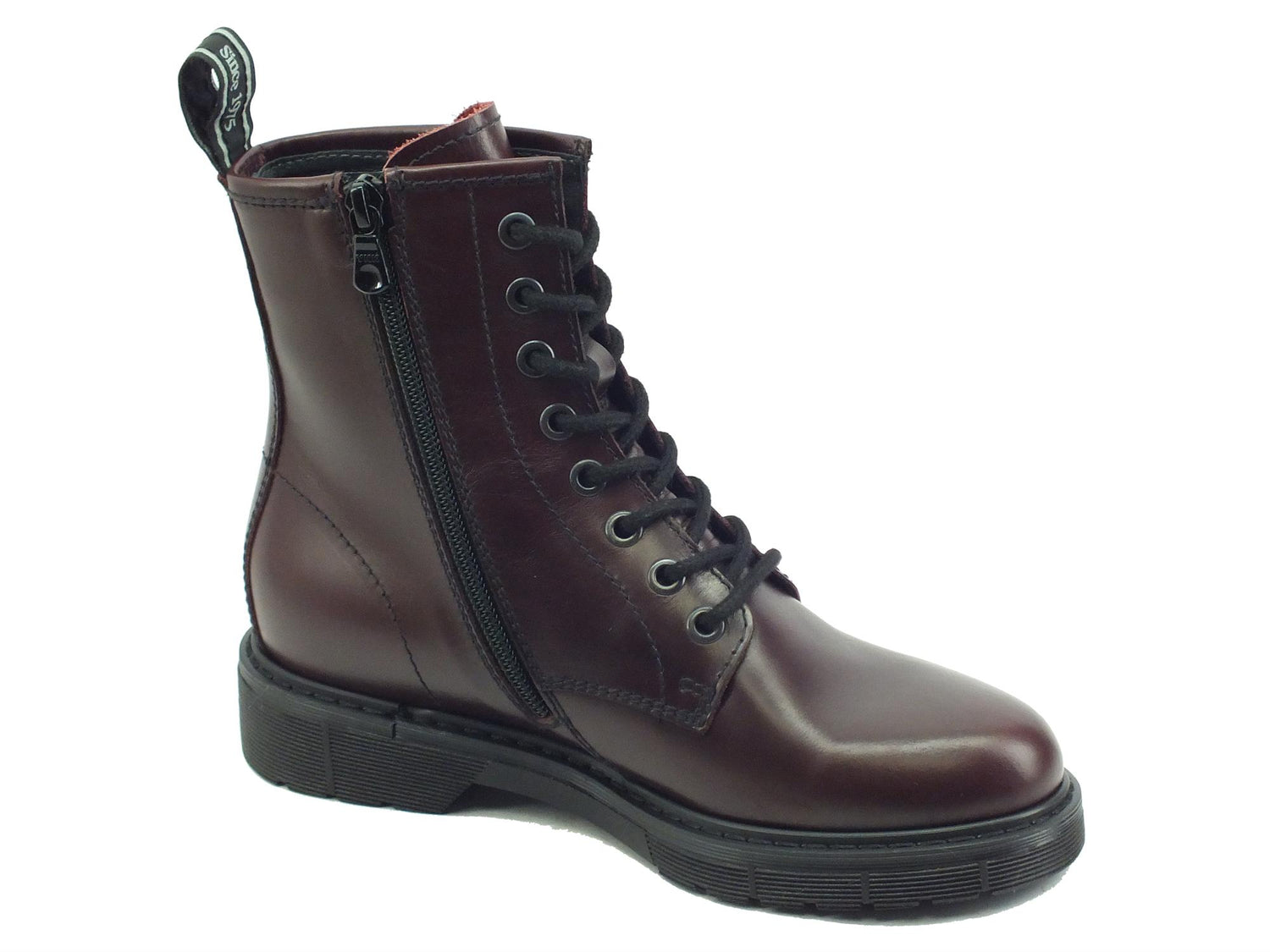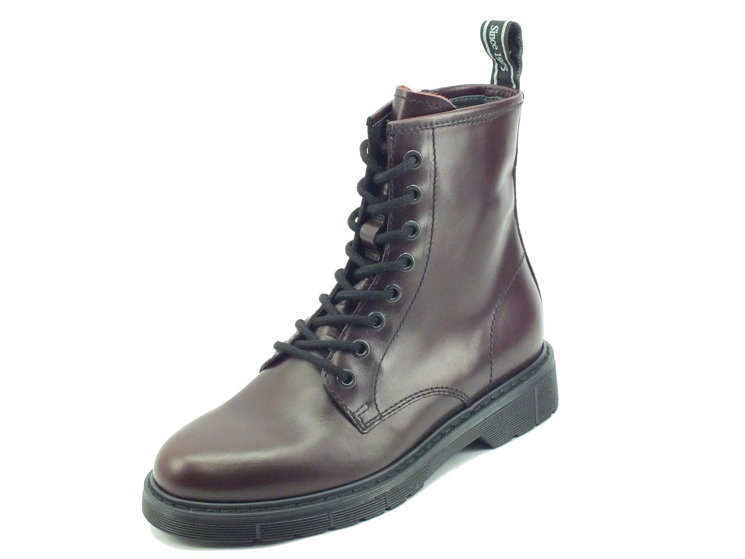 Nerogiardini i117160d runner bordò scarponcini per donna in pelle con lampo e lacci