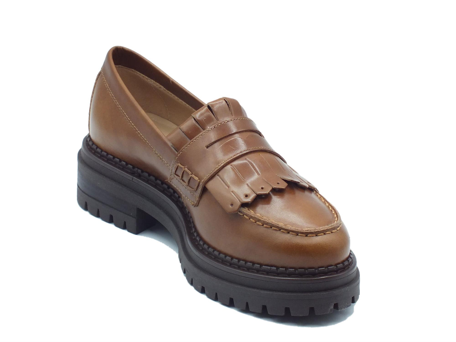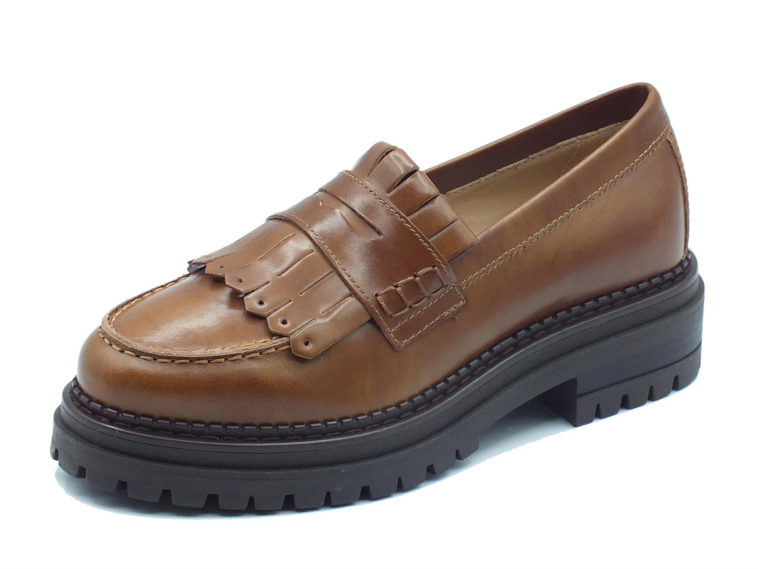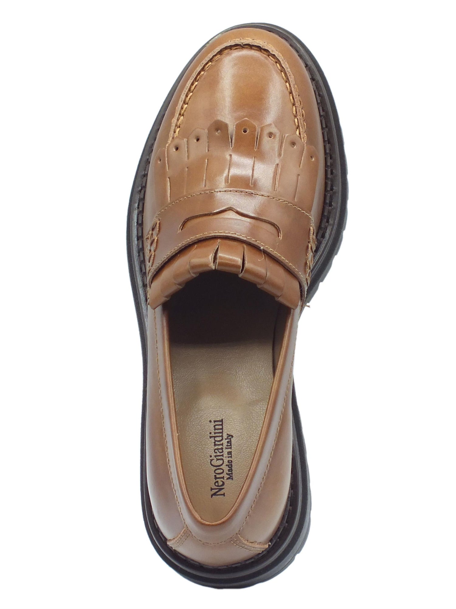 Nerogiardini i308101d manolete cuoio mocassini classici per donna in pelle con frange e tacco medio