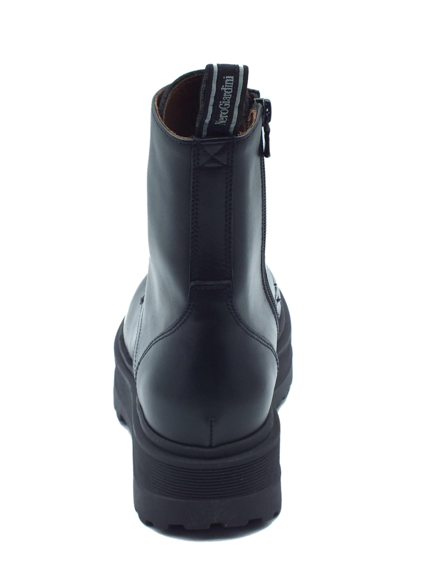 Nerogiardini i309190d nero anfibi per donna in pelle con lacci e lampo tacco alto
