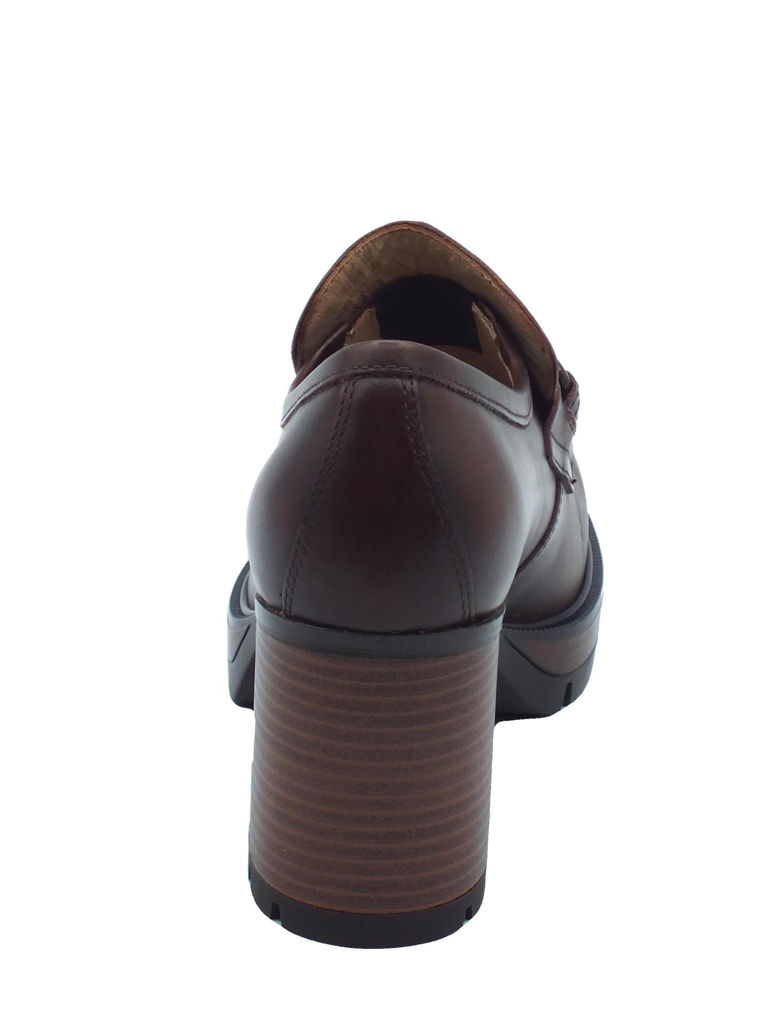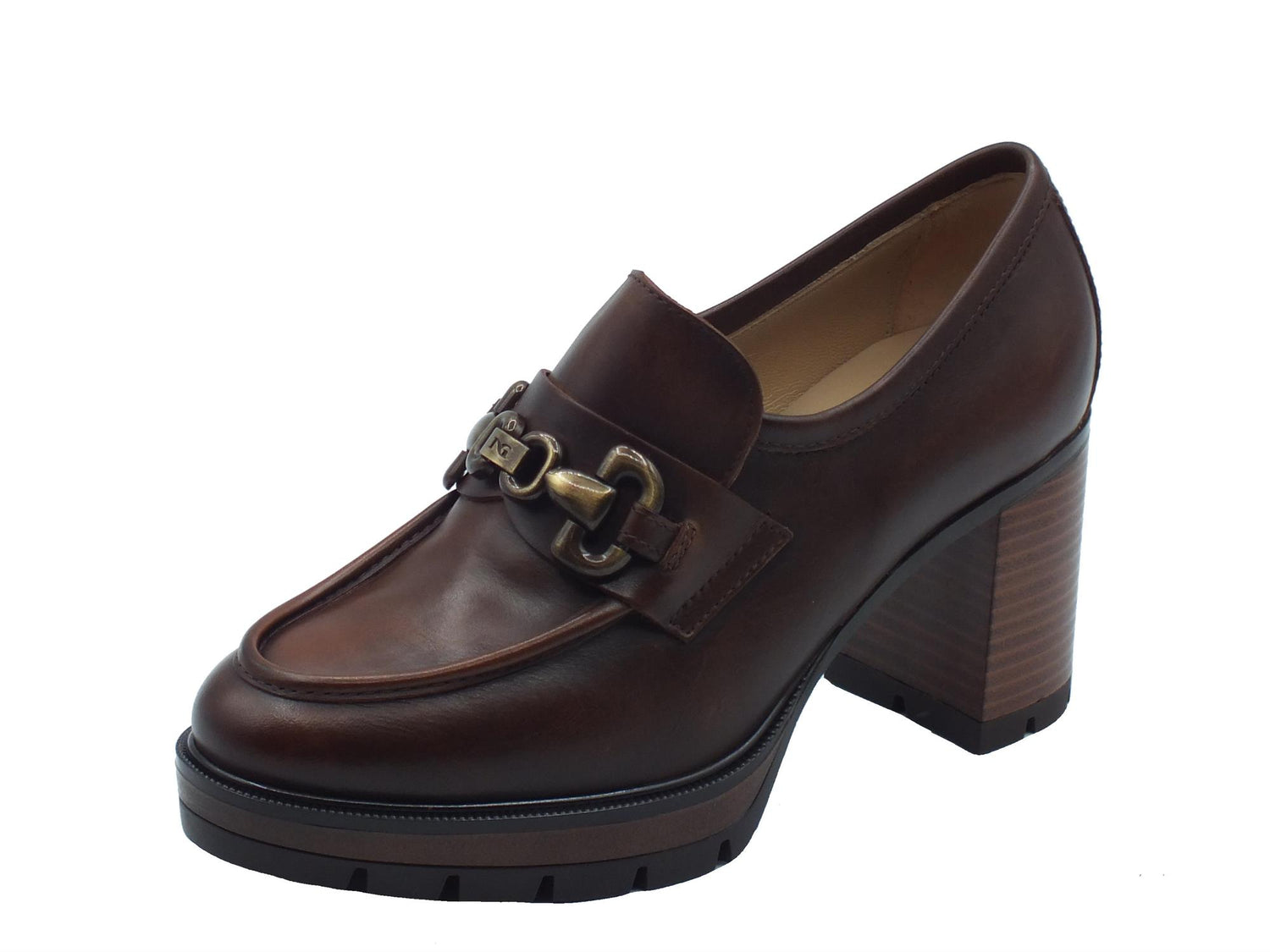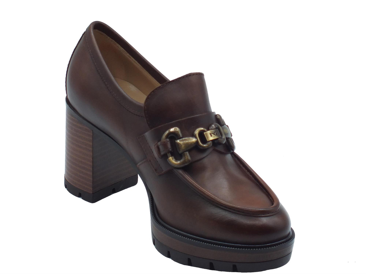 Nerogiardini i411432d delvato beige mocassini classici eleganti per donna in pelle con tacco alto