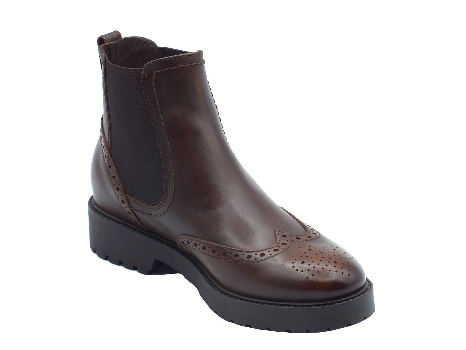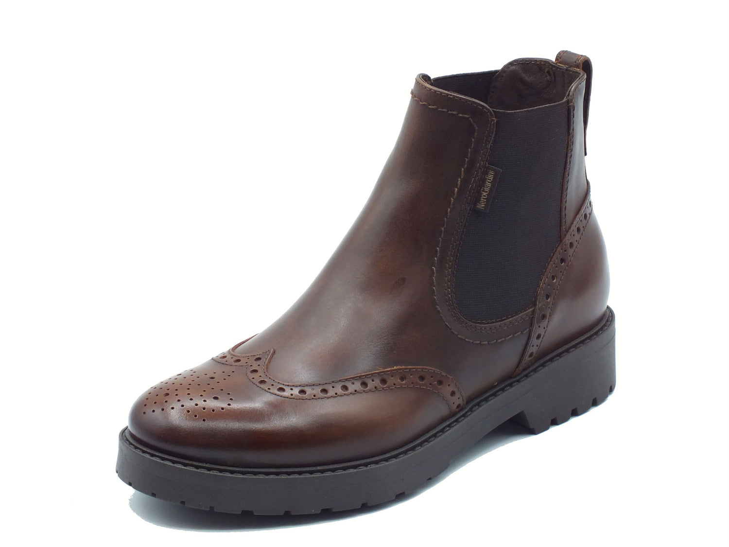 Nerogiardini i513990 delavato beige tronchetti per donna in pelle con tacco basso