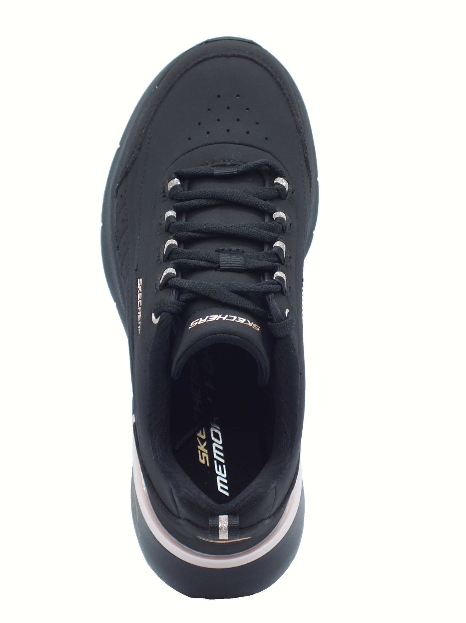 150373 skech-air dynamight black rosee scarpe sportive per donna in ecopelle nero e rosa