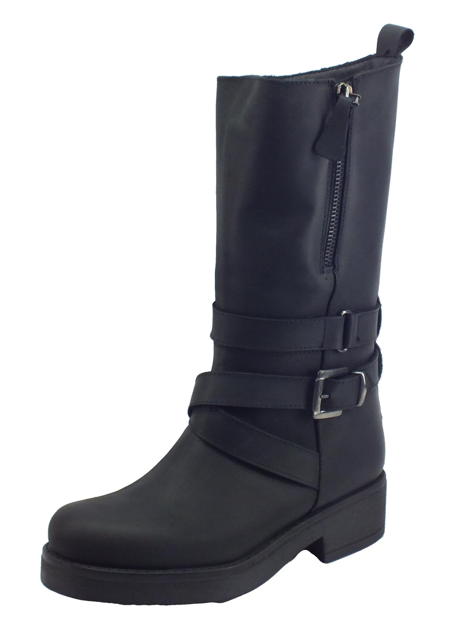 Stm stivali modello cavallerizzo per donna in nabuk nero con fibiette e lampo