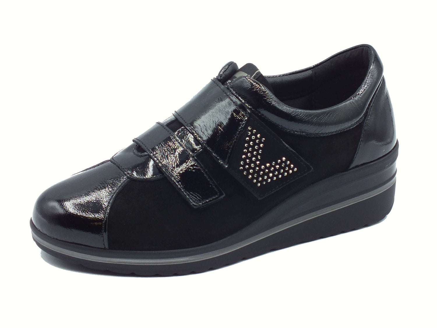Vd205f suede noir sneakers confort per donna in naplak e nabuk con strappo
