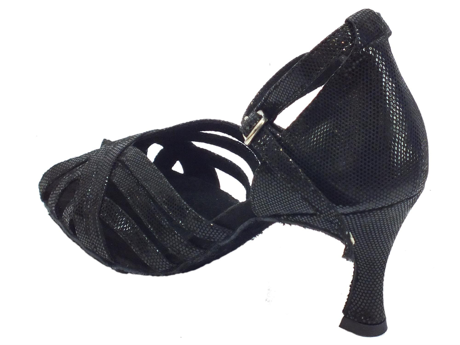 Scarpe da ballo latino americano per donna satinato nero tacco 70n