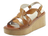 D9404 pergamena conac sandali con zeppa per donna in pelle marrone cognac