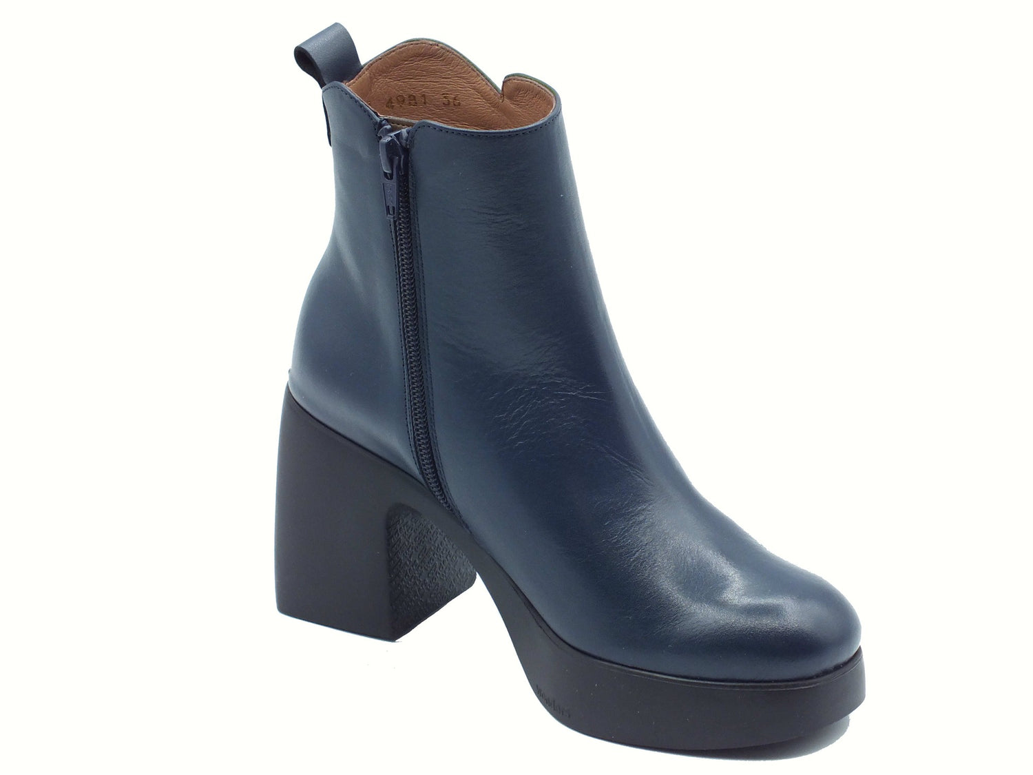 H-4981 lady isy noche tronchetti per donna in pelle blu notte con tacco alto