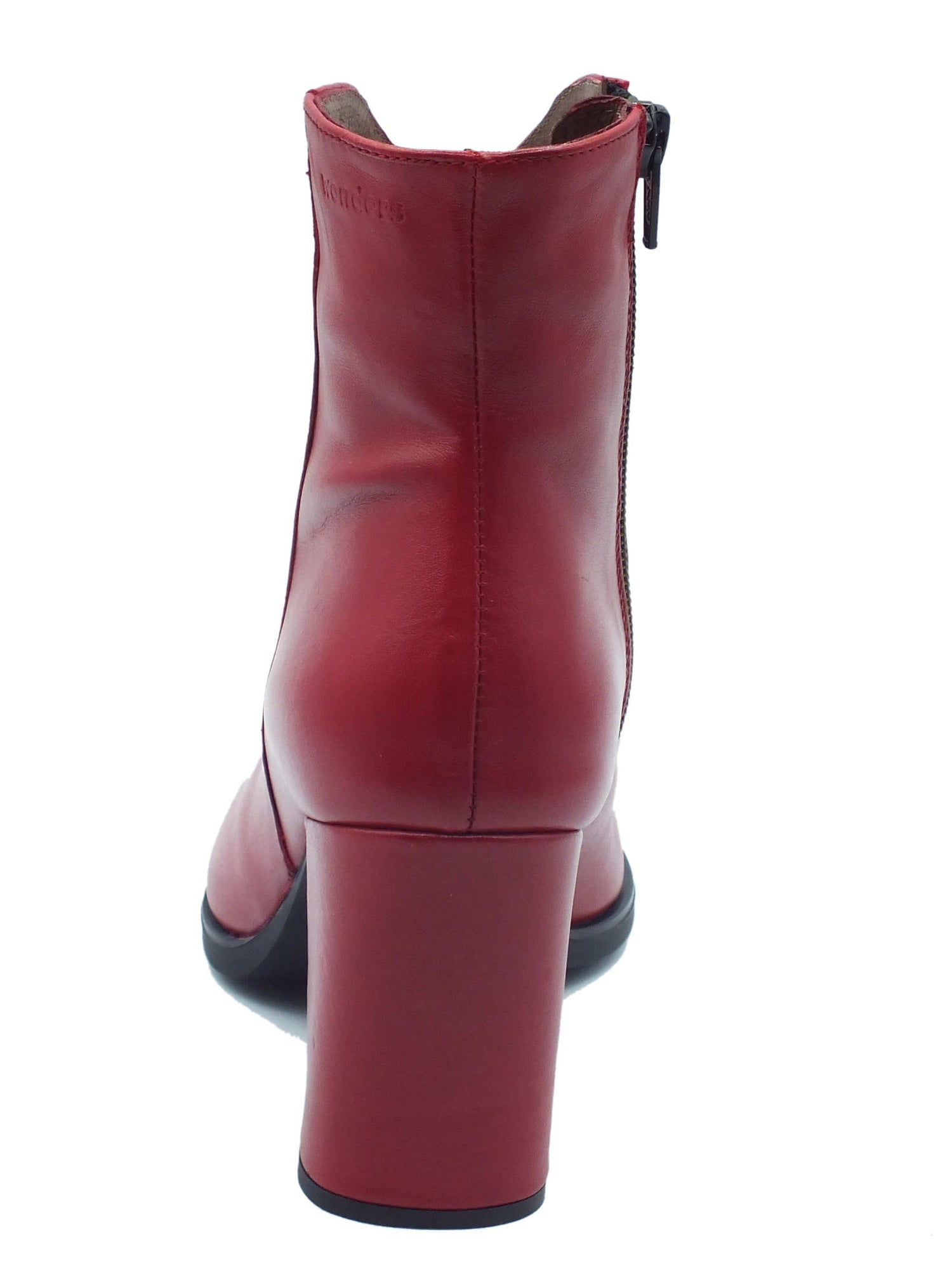 H-5403 nara bora rubi tronchetti a punta con tacco alto per donna in pelle rossa con lampo