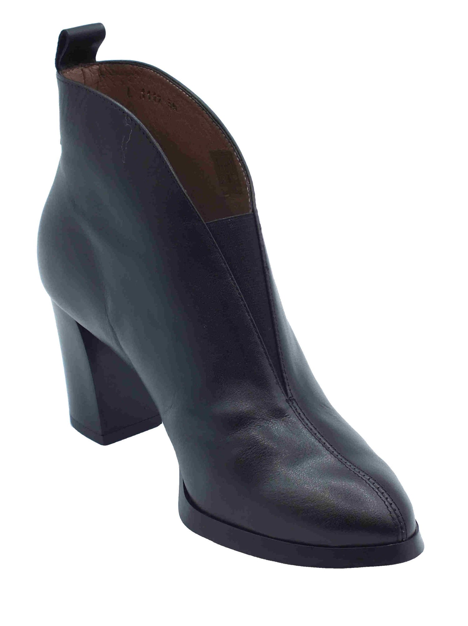 L-1112 isy negro tronchetti accollati con tacco alto per donna in pelle con elastico