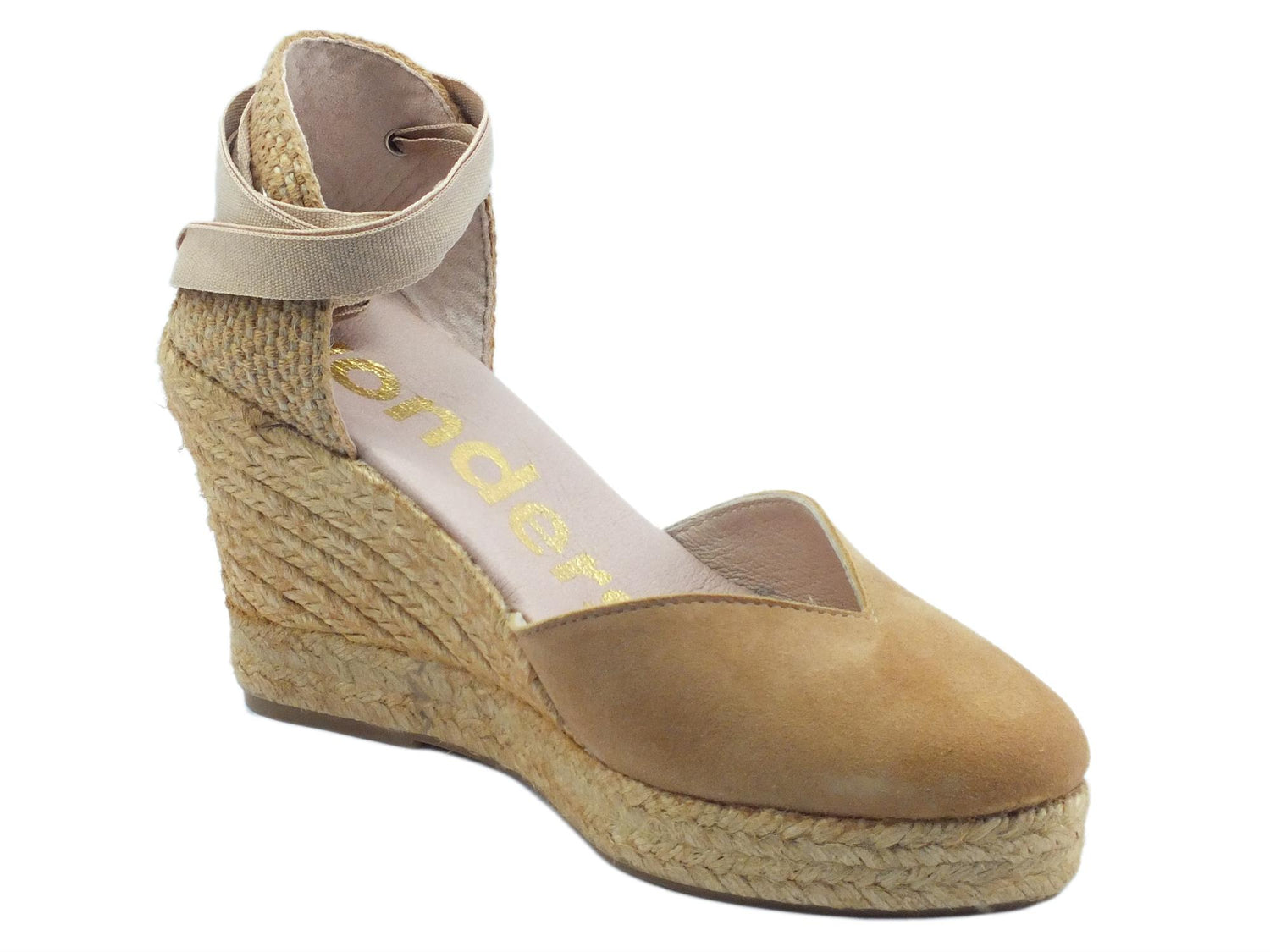 Yhve02 ante v sand campesine per donna in nabuk sabbia zeppa in corda alta