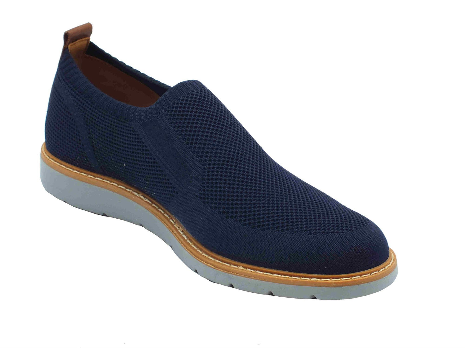 7608011 tessuto blu mocassini per uomo sottopiede in pelle