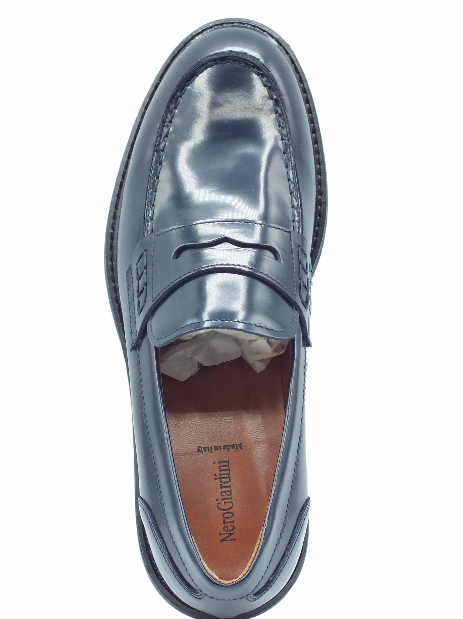 Nerogiardini 500600 wembley blu mocassini eleganti per uomo in pelle abrasivata