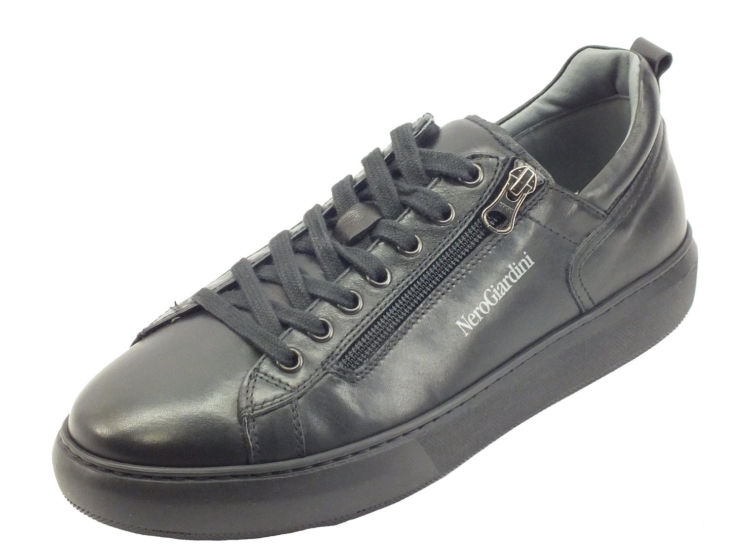 Nerogiardini i202570u sauvage nero snakers sportive per uomo in pelle con lacci e lampo