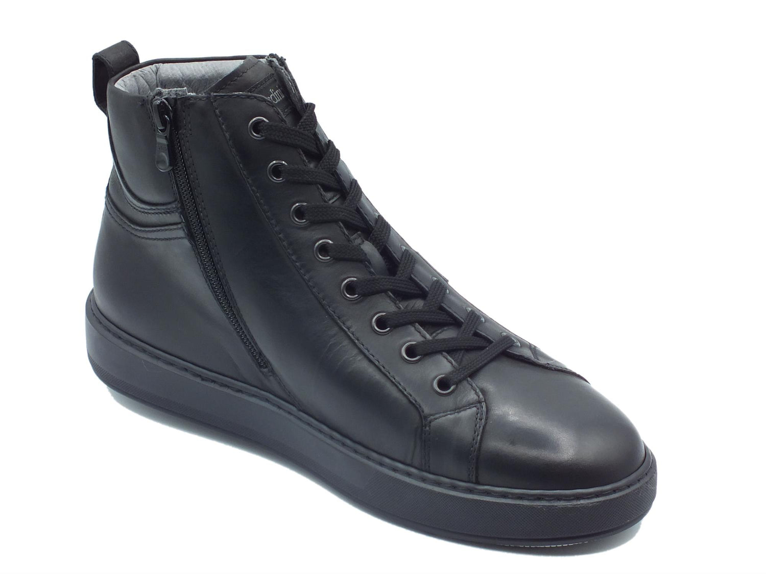 Nerogiardini i303061u neopolis nero scarponcini per uomo in pelle con lacci e lampo