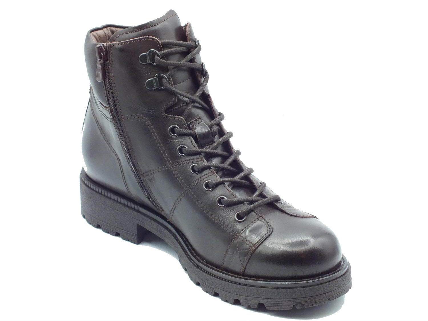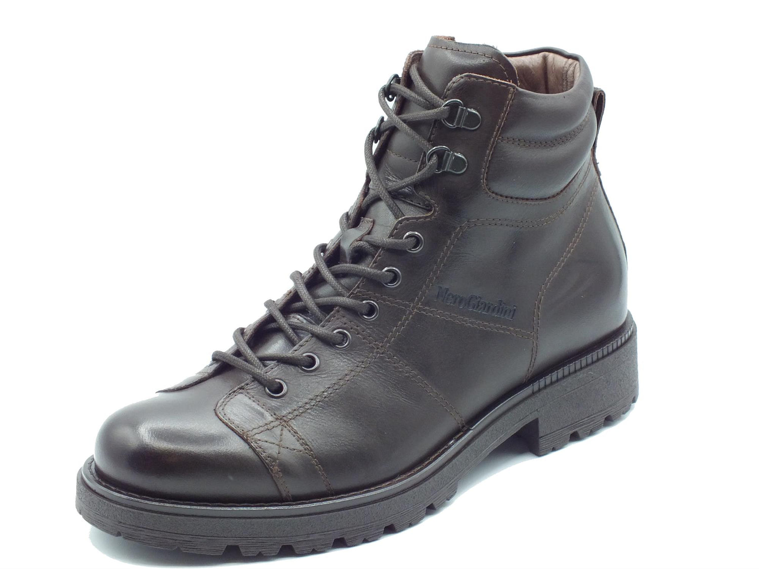 Nerogiardini i400512u kenia caffè anfibi per uomo in pelle testa di moro con lacci e lampo