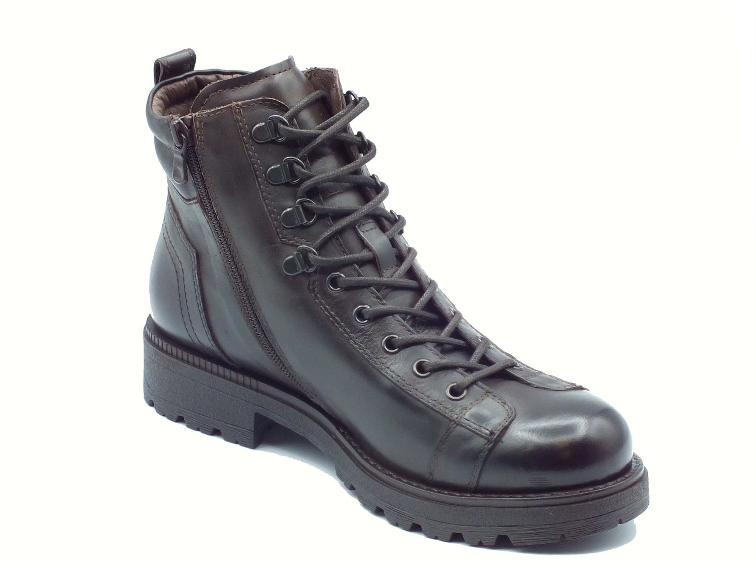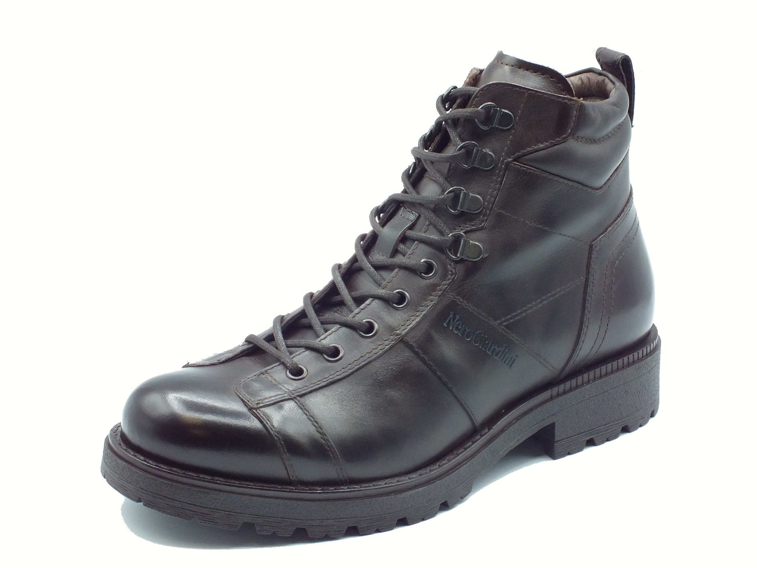 Nerogiardini i501011u kenia caffè anfibi per uomo in pelle testa di moro con lacci e lampo